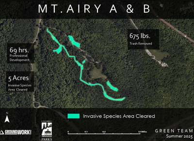 16 acres of invasive species cleared — improving the health of local parks, trails, and natural areas